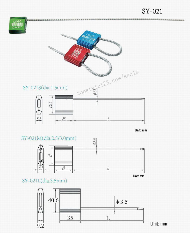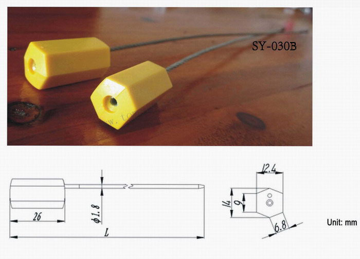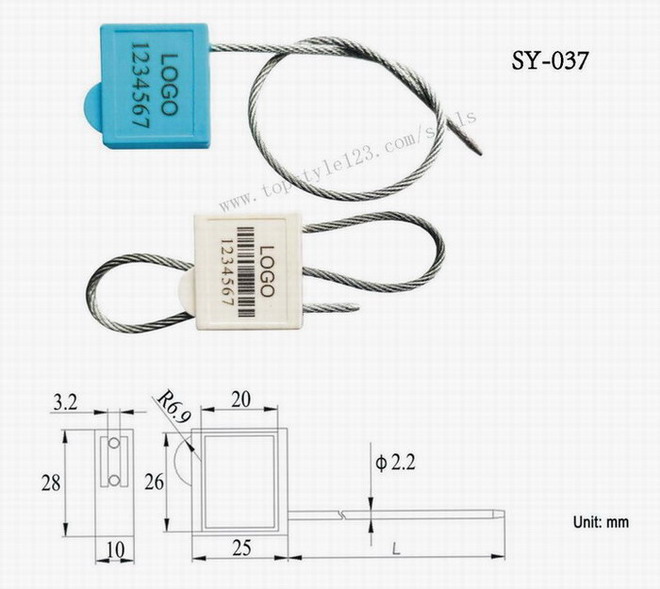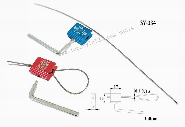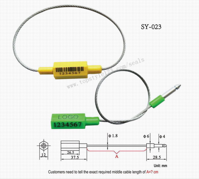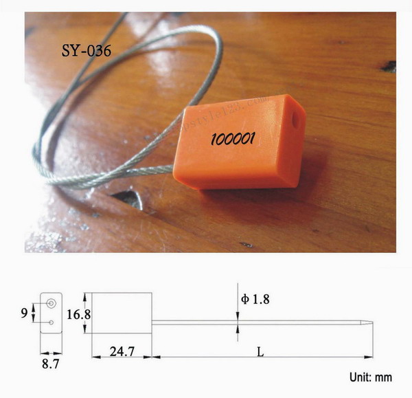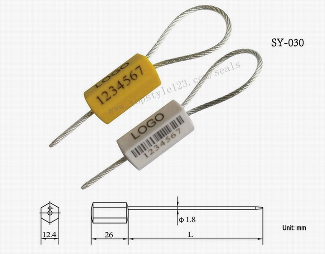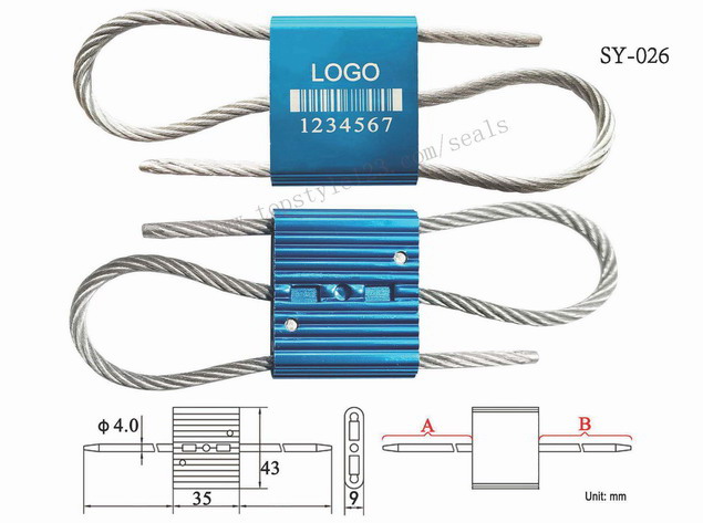 Materials: Pull-tight cable seal with flexible stainless steel wire, Die-casting aluminum lock body.